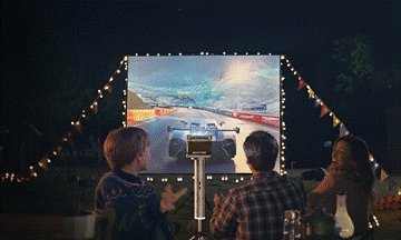 Każdy z 3 segmentów tego kieszonkowego projektora ma inne zadanie. Pierwszy z nich to supercienki moduł optyczny z najmniejszym na świecie mikroskopijnym chipem DLP. Drugi segment to gimbal z głośnikami stereo, natomiast trzeci to zintegrowana bateria i antypoślizgowa podstawa. Prawdziwe kino domowe ukryte w tej smukłej i drobnej obudowie.